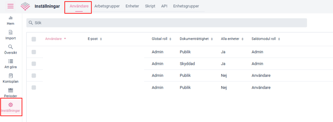 Nej - Användaren har endast access till de enheter/enhetsgrupper som tilldelas denna - Saldomodul roll
