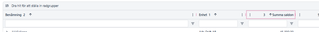 Man kan gruppera på olika saker, tex enhet, genom att dra rubriken upp en nivå :